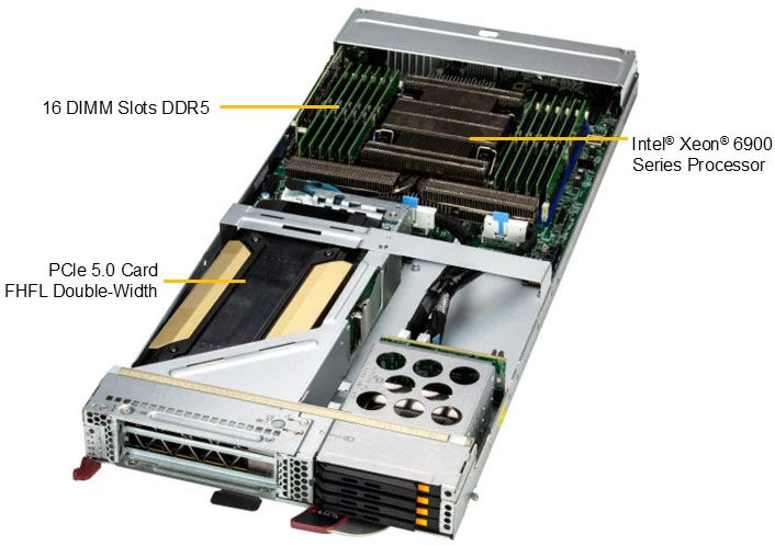 | CPU | Single Socket BR (LGA-7529) Intel® Xeon® 6900 series processors with P-cores |