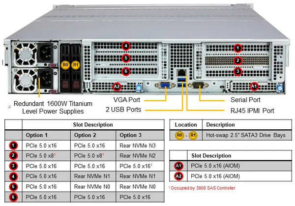 - Up to 6x PCIe 5.0 Slots (Slot #2 populated by 3908 controller by default)