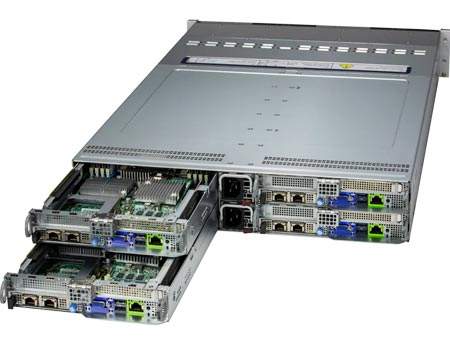 2U 4-Node BigTwin Server. 6 2.5" NVMe/ SATA (2 NVMe hybrid) per node