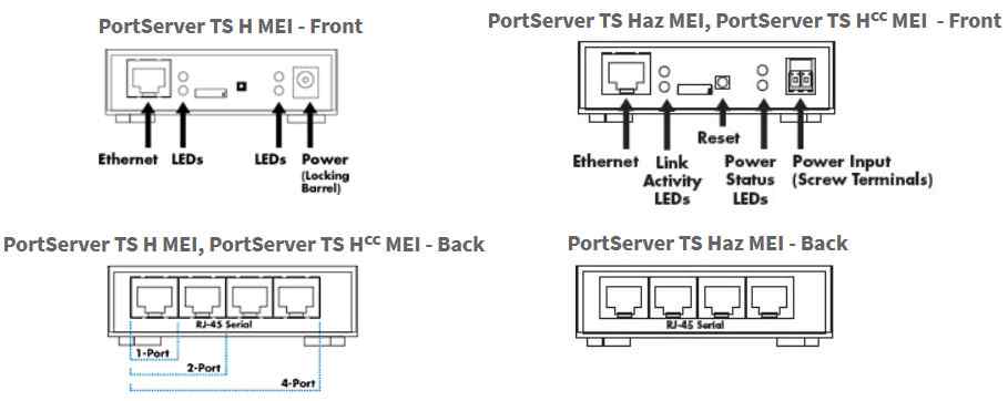 | Model | PortServer TS 4 H MEI | PortServer TS 1 H MEI | PortServer TS 4 Hcc MEI |