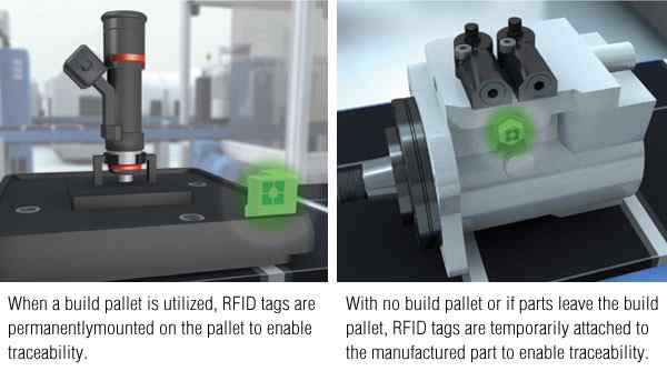 Logistics track incoming and outgoing shipments of parts and products between the final assembly plant and various sub-suppliers. RFID tags are affixed to containers or pallets, so parts can be tracked from individual facilities.